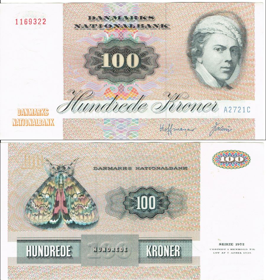 Seddel: 100 kr. 1972 A2721C i kv. 01