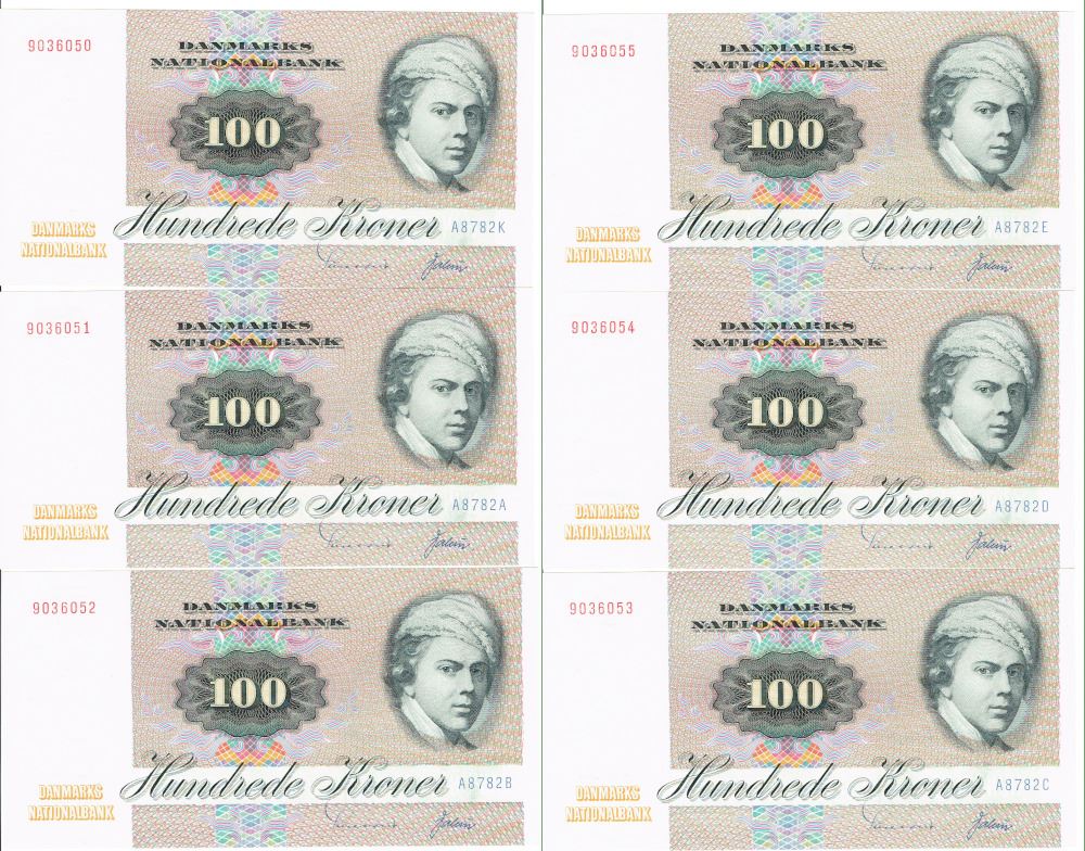 Seddel: 100 kr. 1978 A8782 i kv. 0 6 stk. forløbende nr.