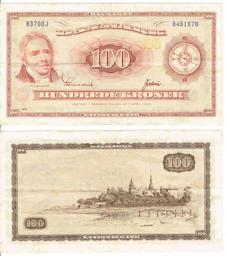 Seddel: 100 kr. 1970 B3700J i kv. 1+ erstatningsseddel