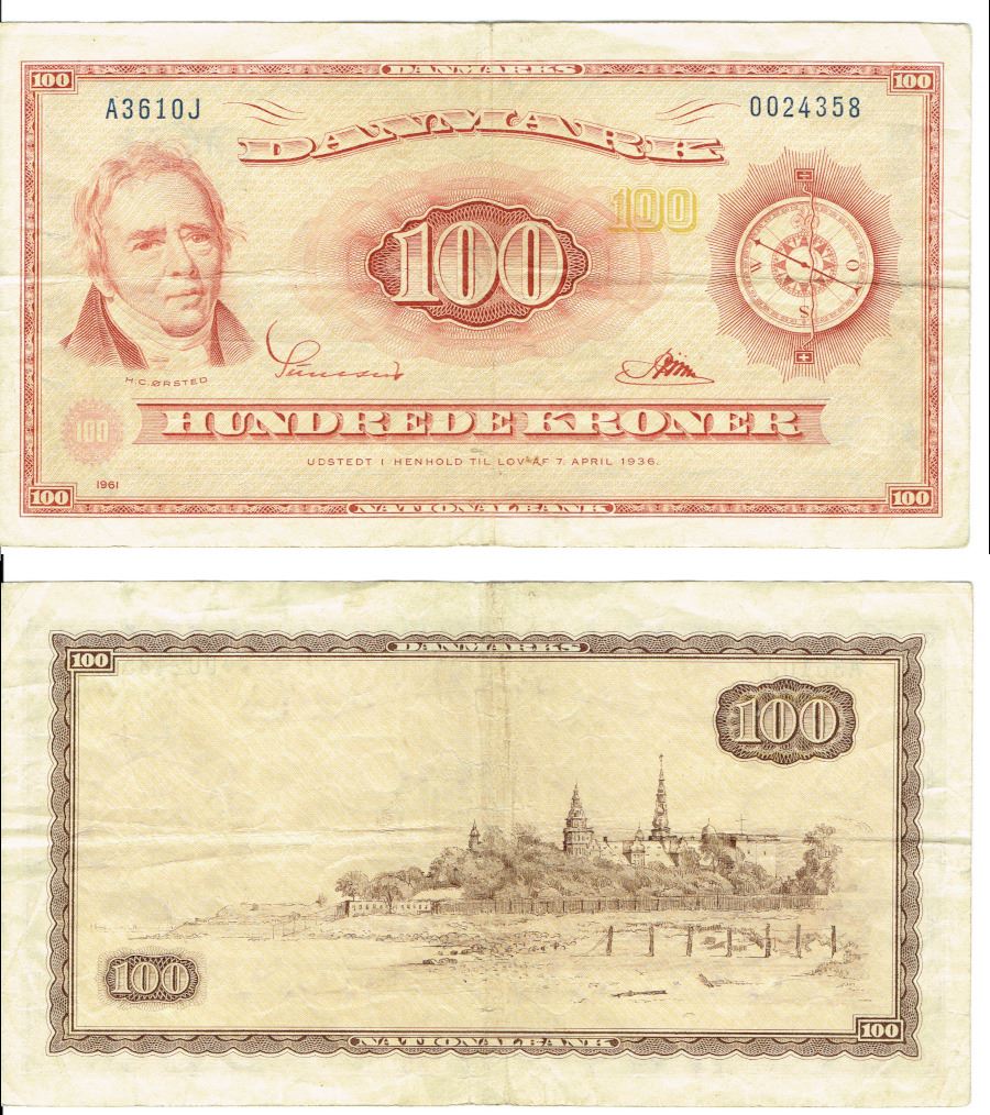 Seddel: 100 kr. 1961 A3610J i kv. 1+ erstatningsseddel
