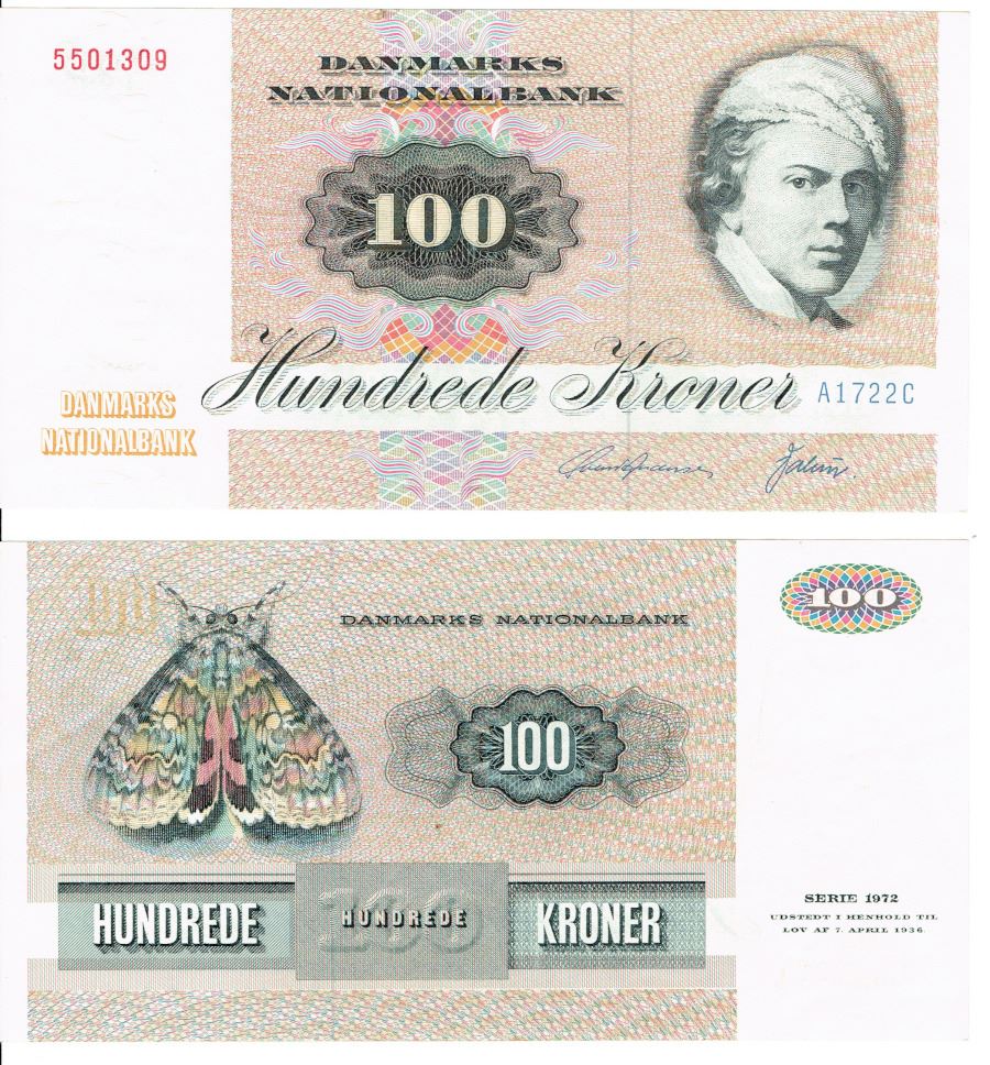 Seddel: 100 kr. 1972 A1722C i kv. 1+ - 01