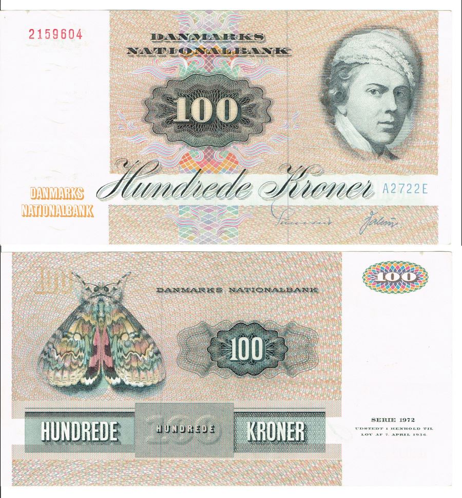 Seddel: 100 kr. 1972 A2722E i kv. 1+ - 01