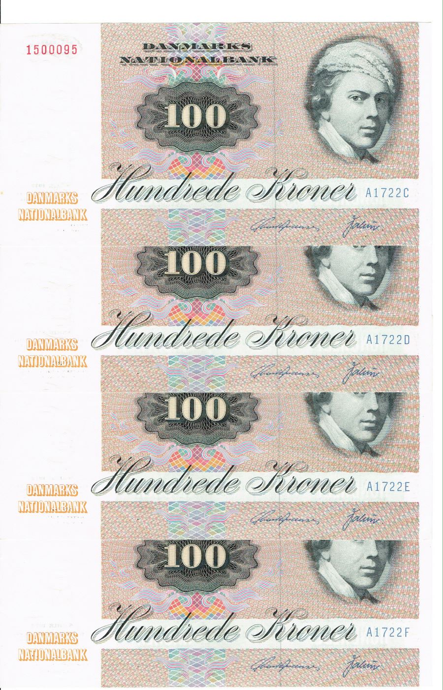 Seddel: 100 kr. 1972 A1722 i kv. 1+ - 01 5 stk. fortløbende nr.