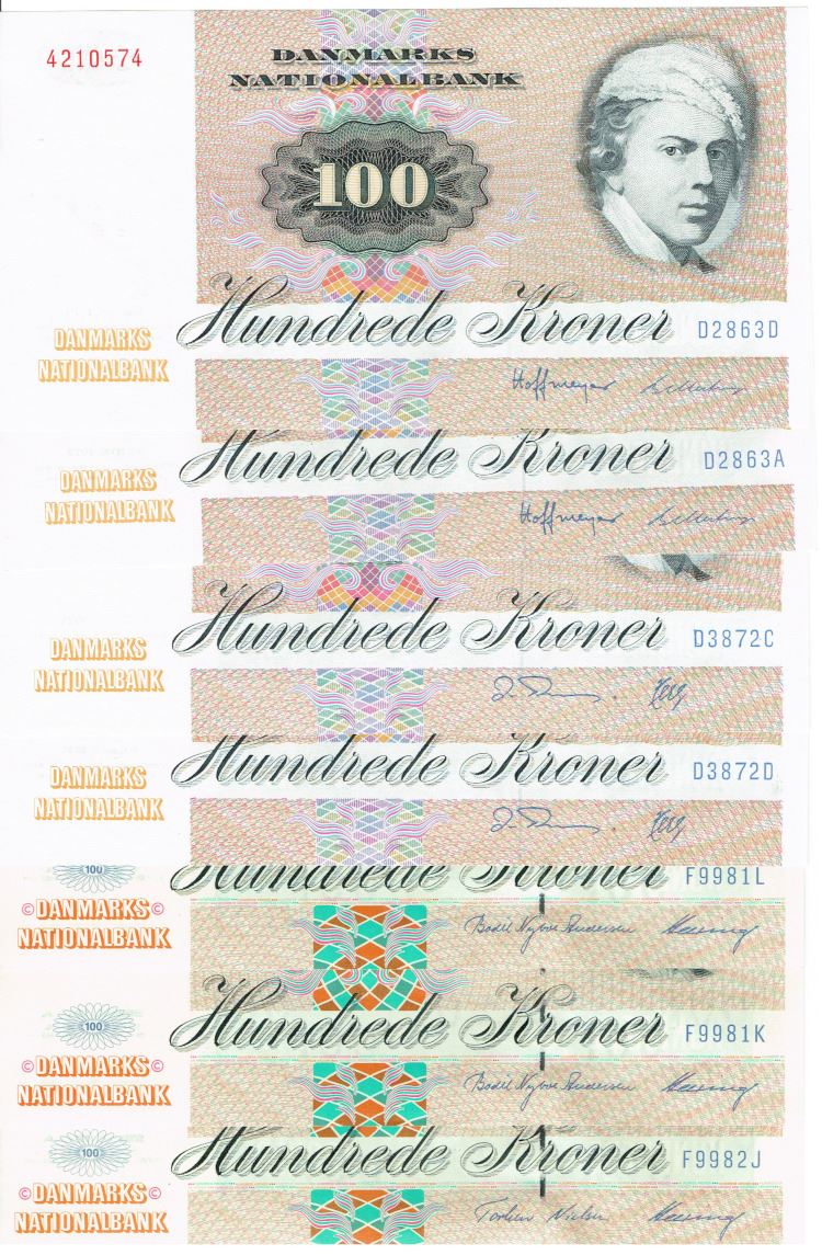 Seddel: 100 kr. 1986 - 1998 omkring kv. 01 7 stk.
