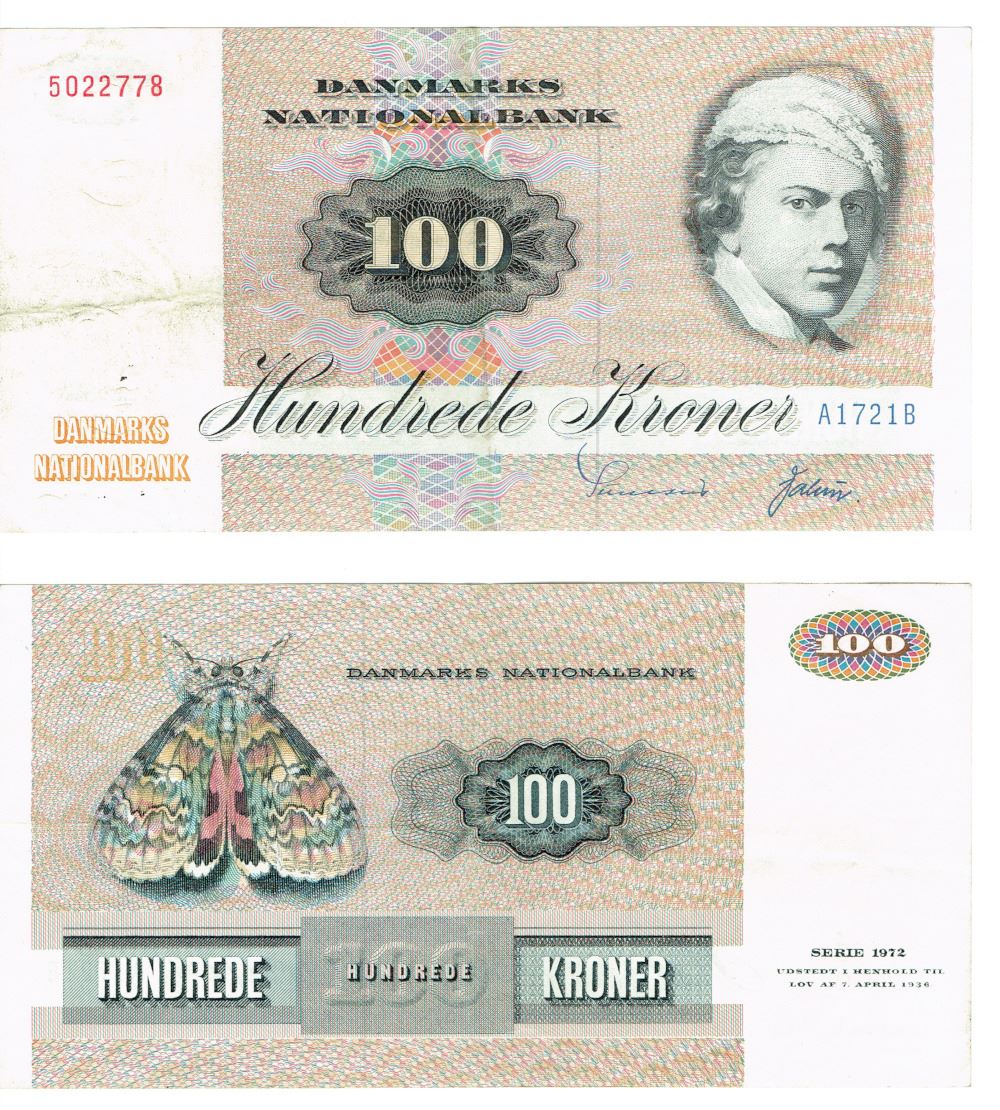 Seddel: 100 kr. 1972 A1721B i kv. 1+