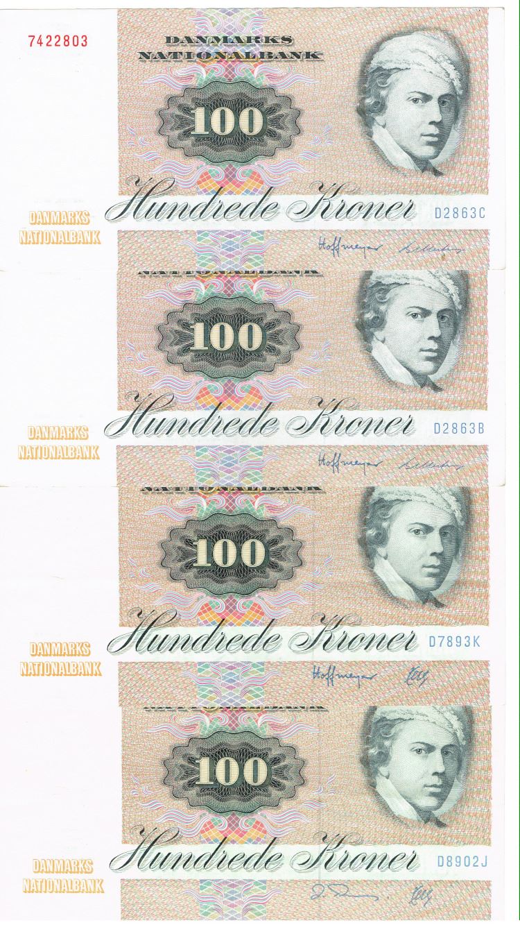 Seddel: 100 kr. 1986 - 1989 i kv. 1+ 4 stk.