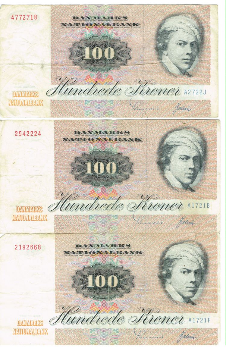 Seddel: 100 kr. 1972 i kv. 1- - 1 3 stk.