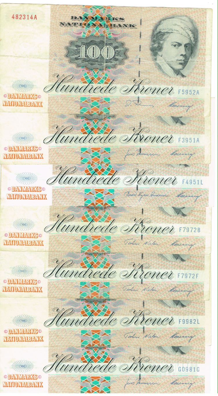 Seddel: 100 kr. 1995 - 1998 omkring kv. 1 7 stk.