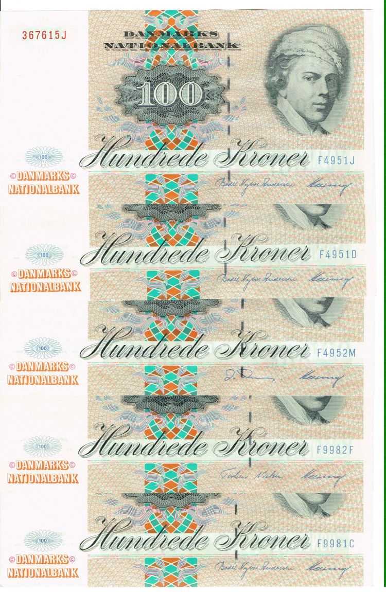 Seddel: 100 kr. 1995 - 1998 i kv. 01 - 01 - 0 5 stk.