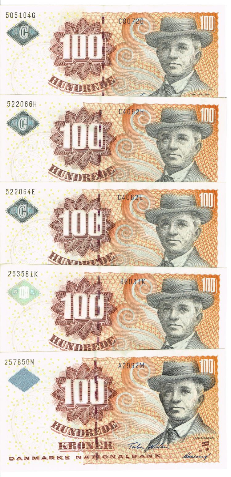 Seddel: 100 kr. 1999 - 2006 i kv. 0 4 stk.