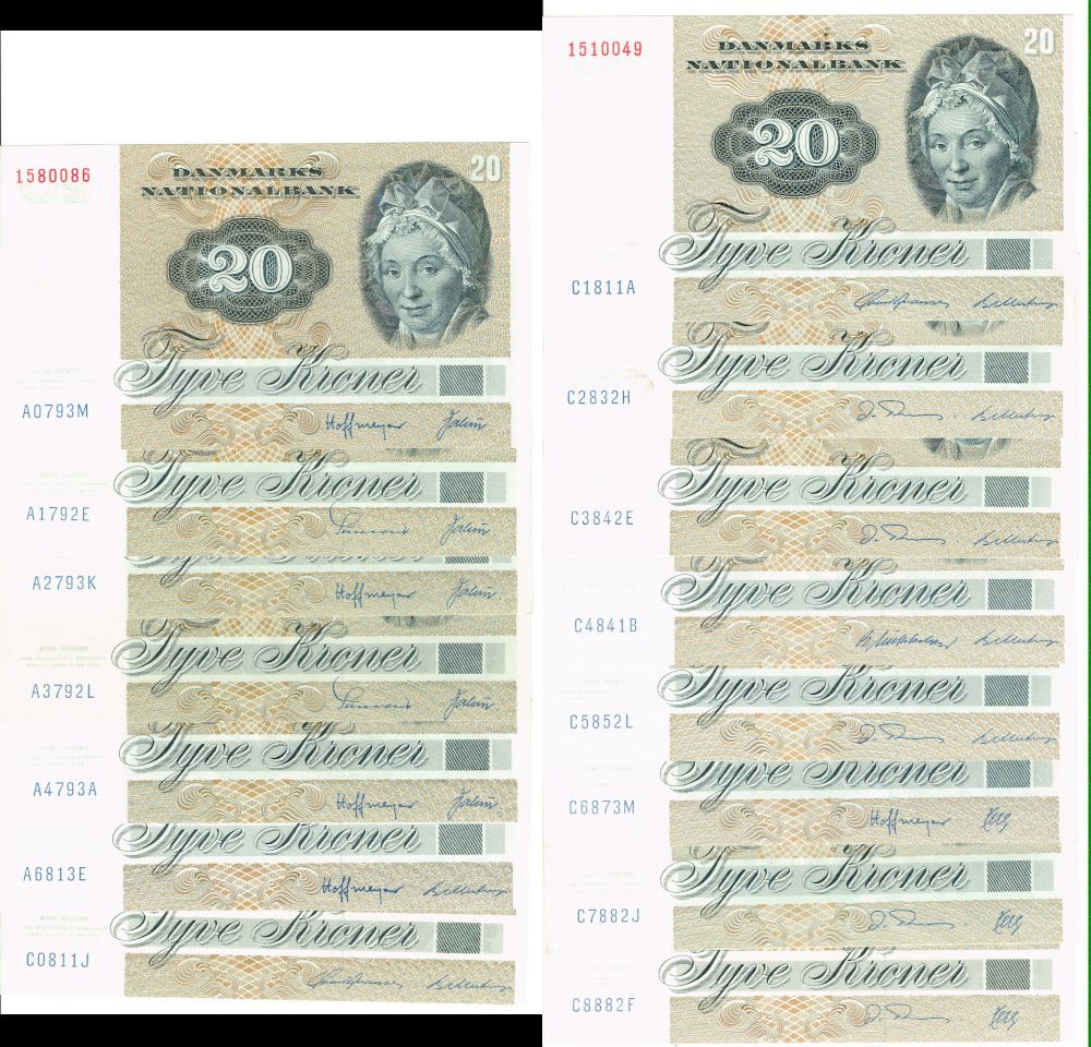 Seddel: 20 kr. 1979-1988 alle litra undtagen A5 og C9 i kv. 01 - 0