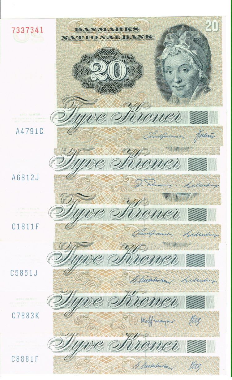 Seddel: 20 kr. 1979 - 1988 i kv. 01 - 0 6 stk.