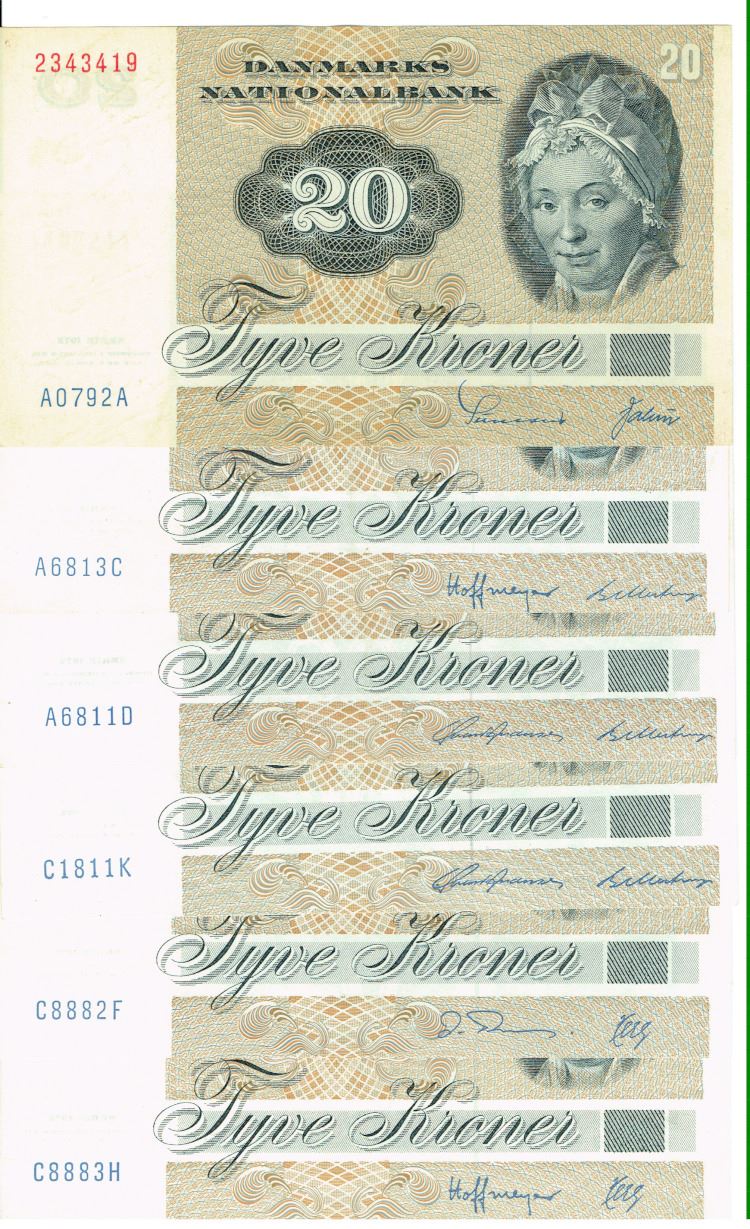 Seddel: 20 kr. 1979 - 1988 omkring kv. 1+ 6 stk.