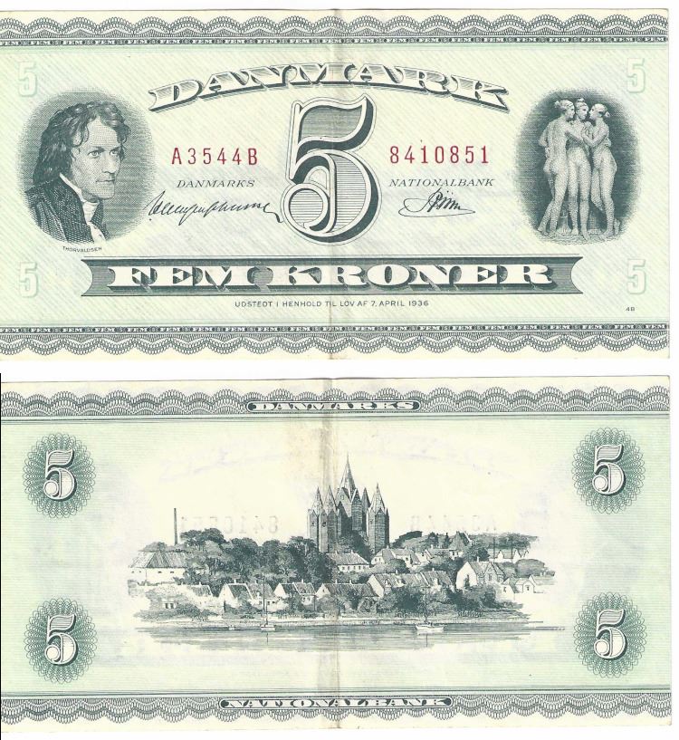 Seddel: 5 kr. 1954 A3544b i kv. 1+
