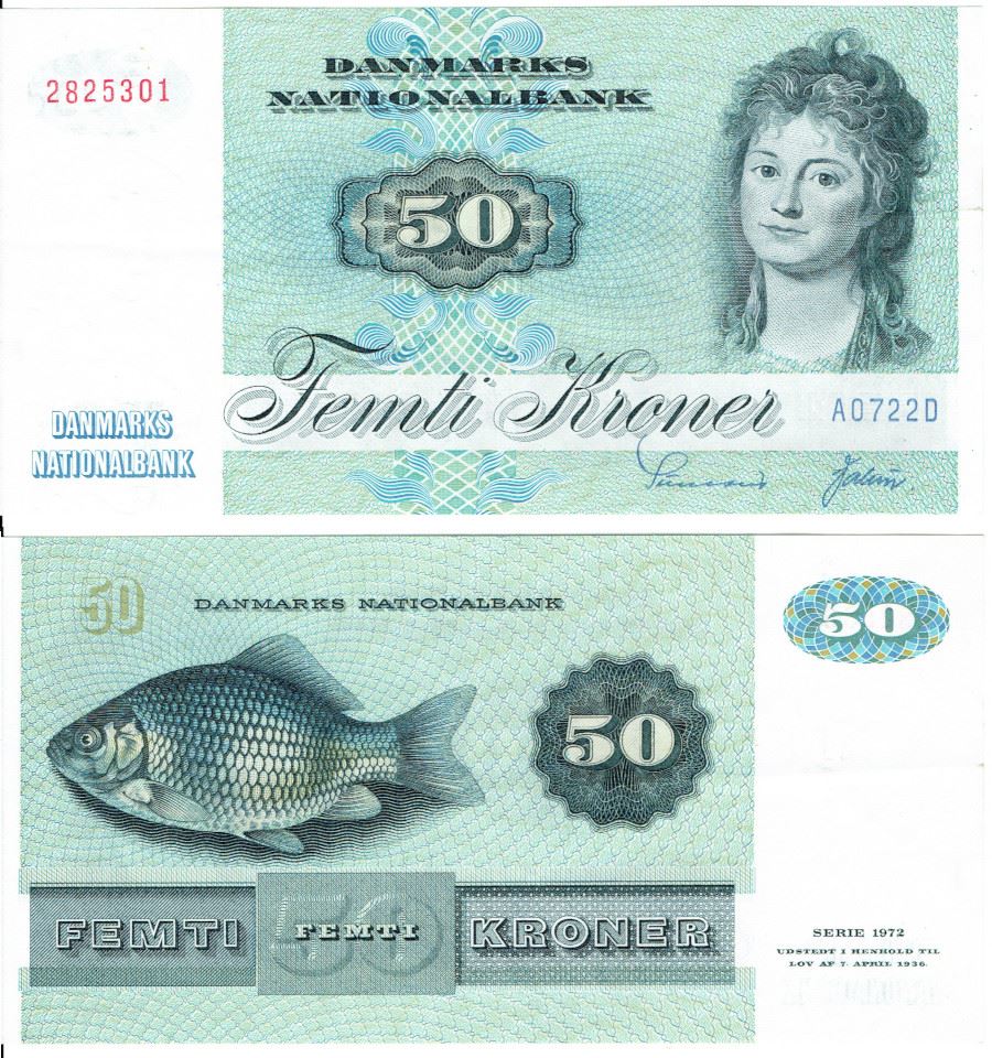 Seddel: 50 kr. 1972 A0722D i kv. 1+ - 01