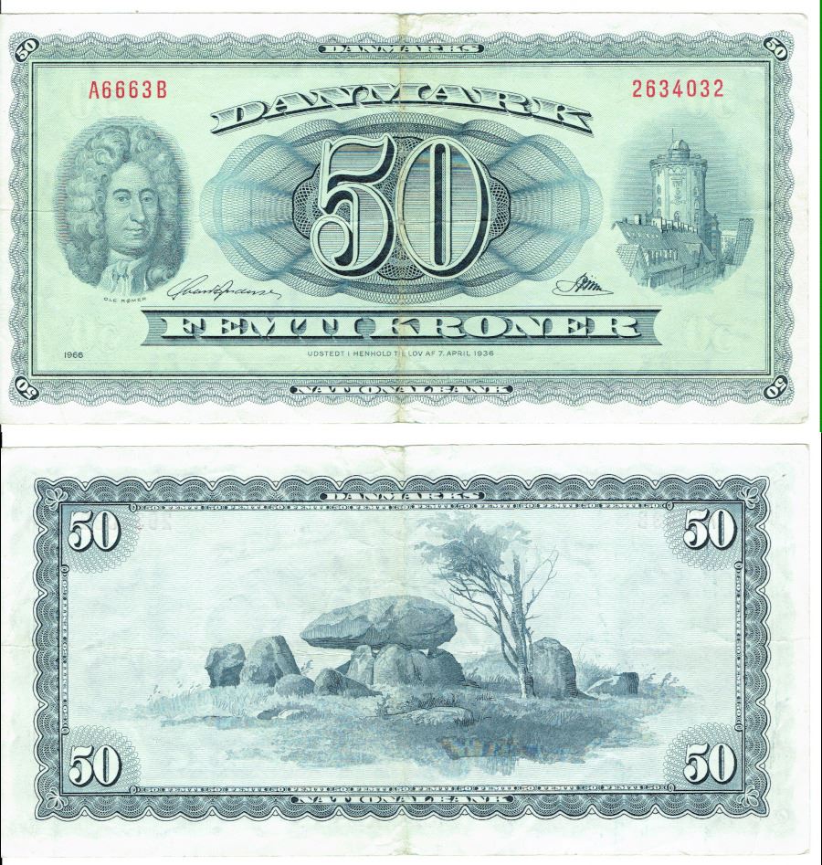 Seddel: 50 kr. 1966 A6663B i kv. 1 - 1+