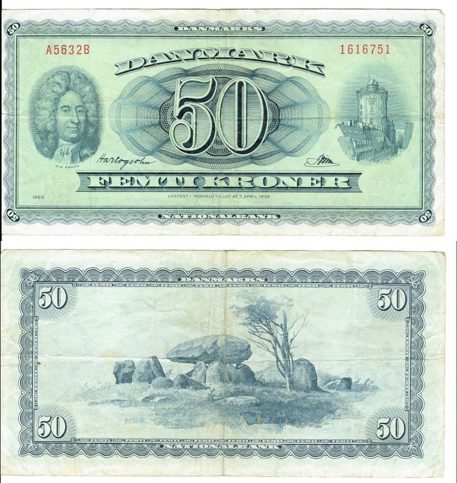 Seddel: 50 kr. 1963 A5632B i kv. 1