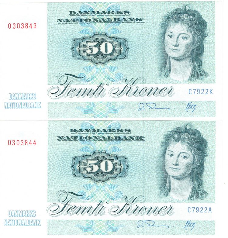 Seddel: 50 kr. 1992 C7922 i kv. 0 2 stk. fortløbende nr.