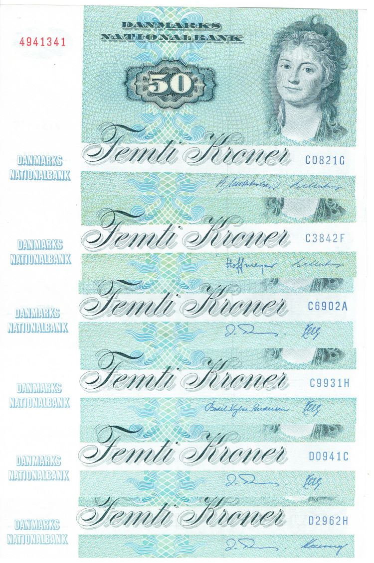 Seddel: 50 kr. 1982 - 1996 i kv. 01 - 01 - 0 6 stk.