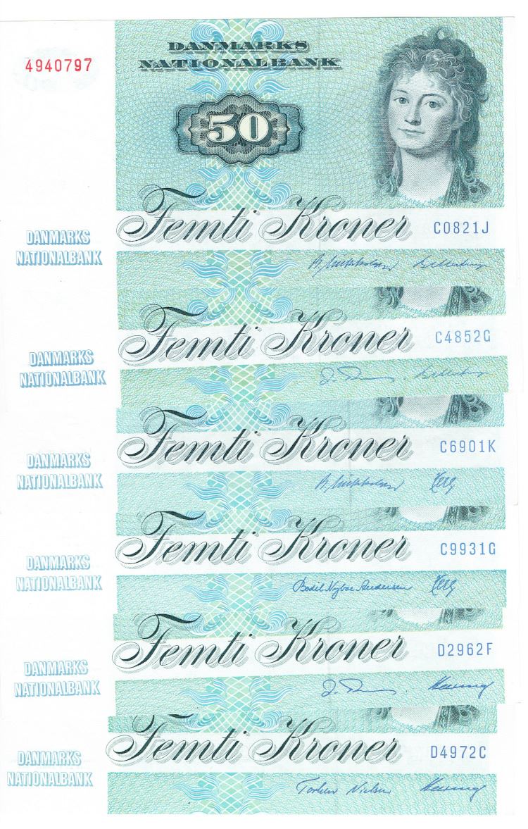 Seddel: 50 kr. 1982 - 1997 i kv. 01 - 01 - 0 6 stk.