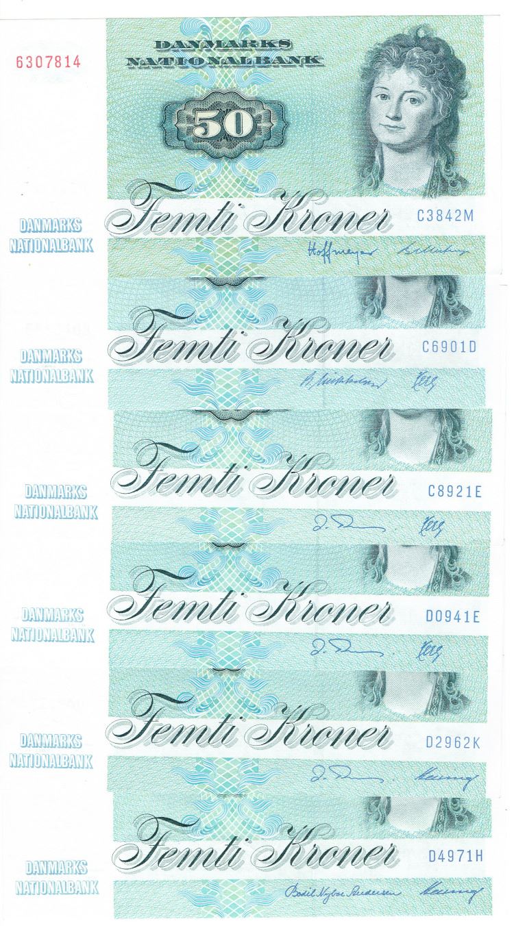 Seddel: 50 kr. 1984 - 1997 i kv. 01 - 01 - 0 6 stk.