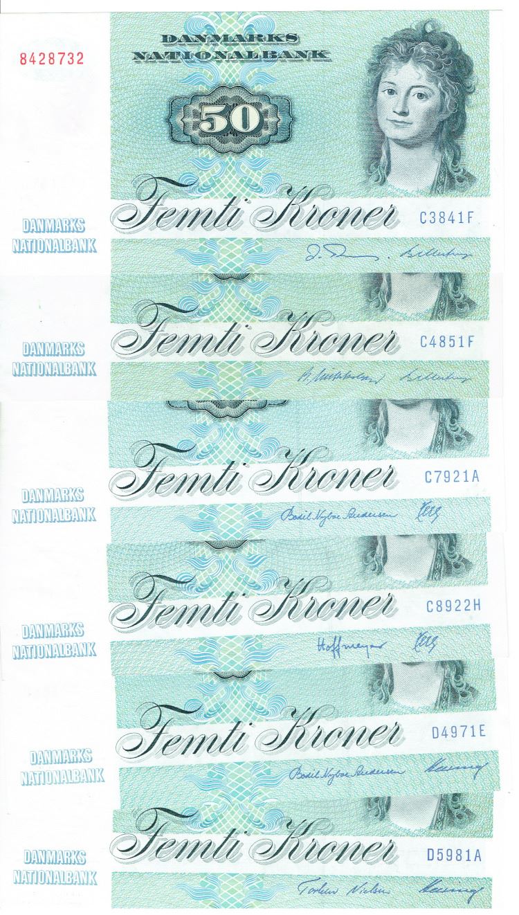 Seddel: 50 kr. 1984 - 1998 i kv. 1+ - 01 6 stk.
