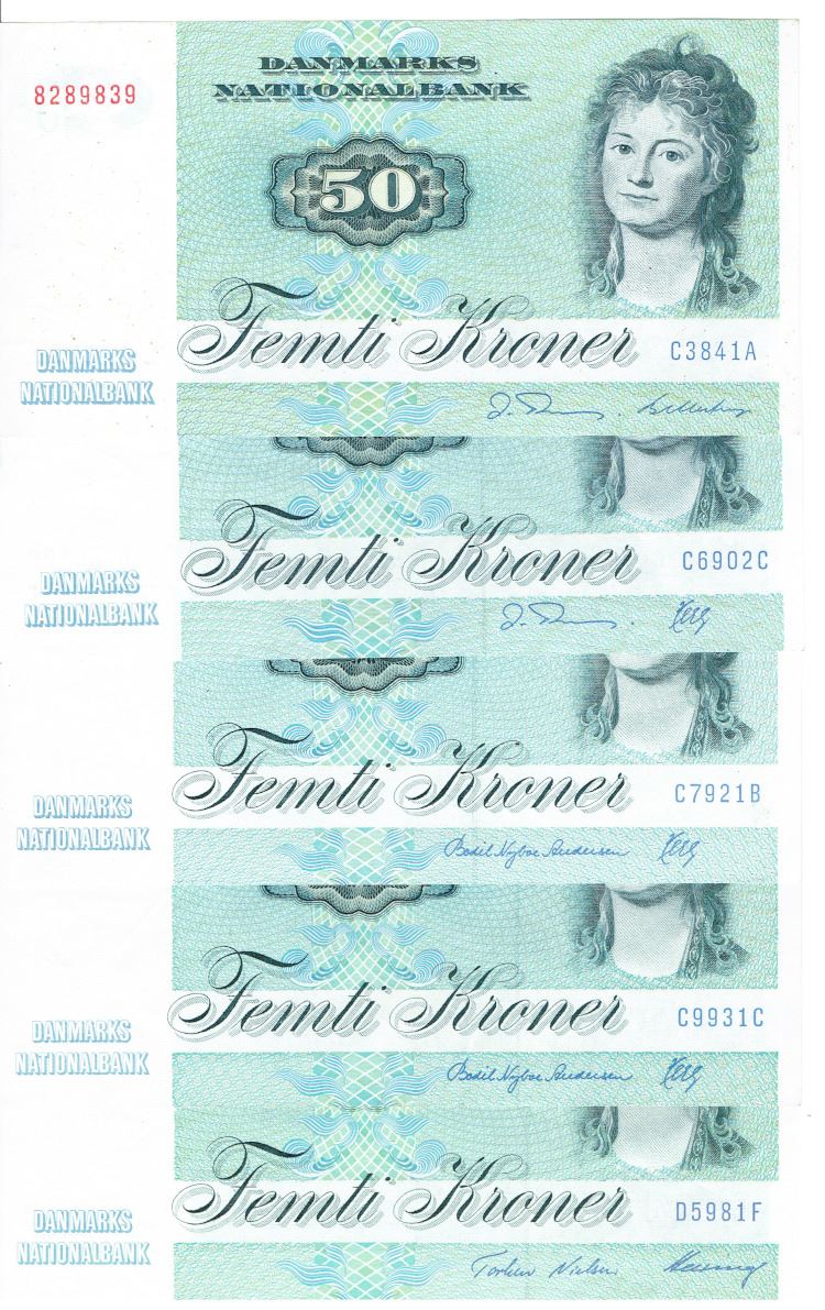 Seddel: 50 kr. 1984 - 1998 i kv. 1+ - 01 5 stk.