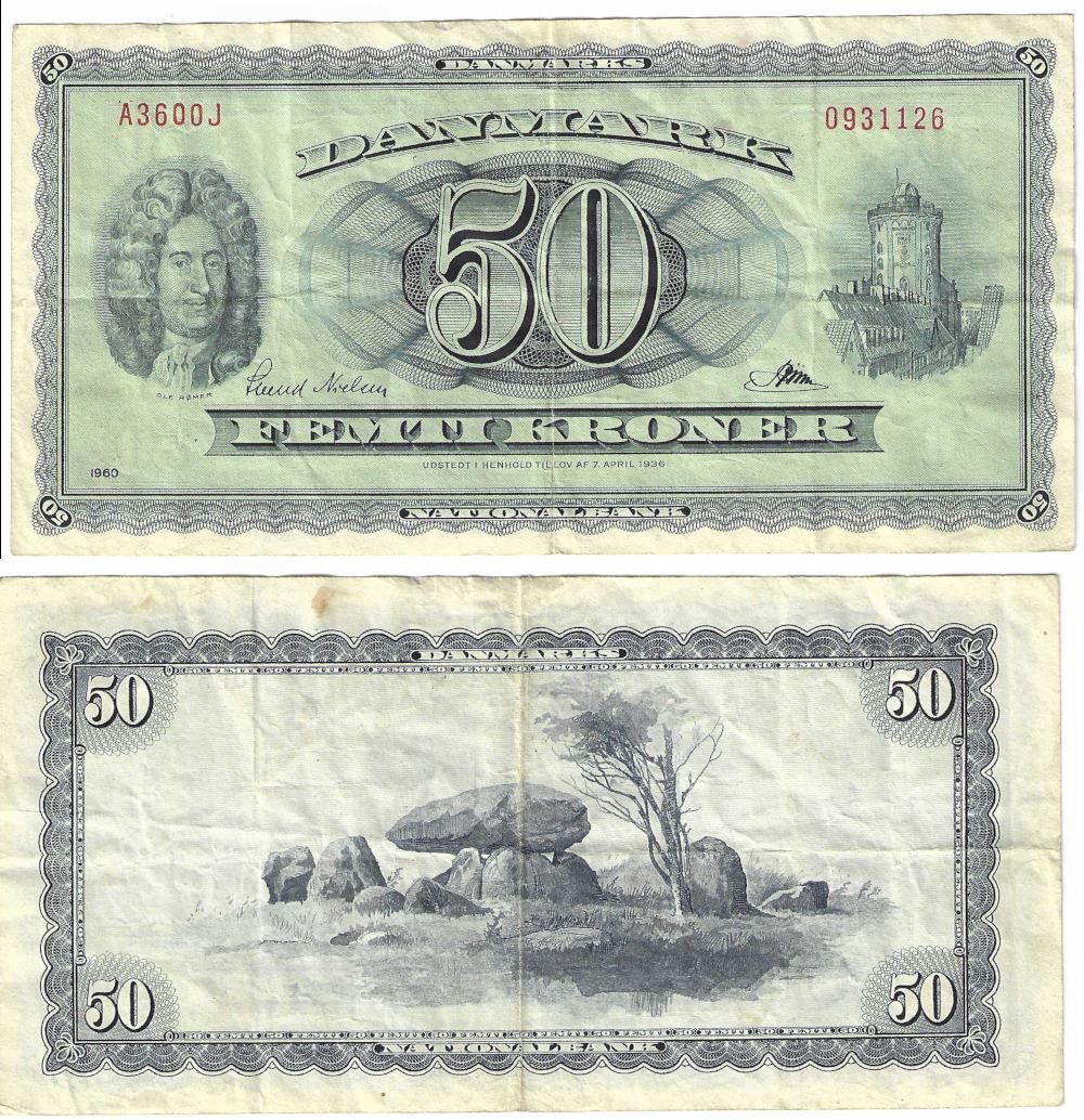 Seddel: 50 kr. 1960 A3600J i kv. 1 - erstatningsseddel