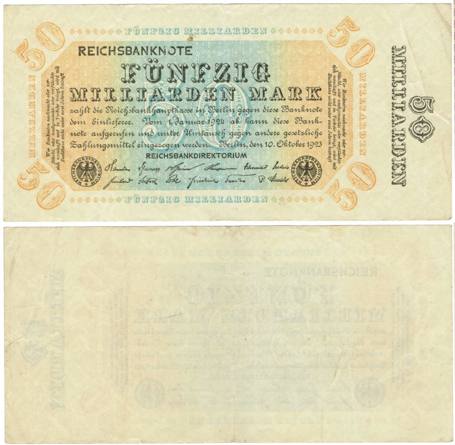 Seddel: Tyskland 50.000.000.000 mark 1923 i kv. 1+