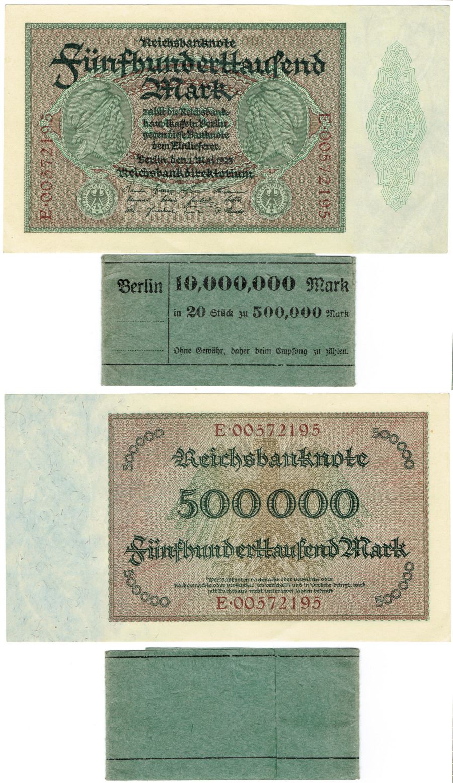 Seddel: Tyskland 500.000 mark 1923 i kv. 01 - 0 med mavebælte