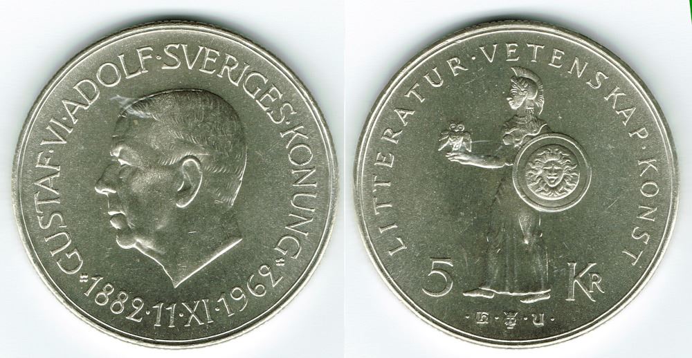 Sverige: 5 kr. 1962 - Gustav VI Adolfs 80 år i kv. 0