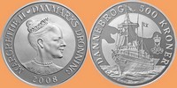 SKIBE: 500 kr. 2008 - Dannebrog - Sølv version