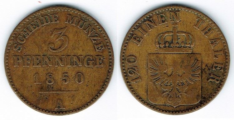 Tyskland: Brandenburg - Preussen: 3 pfennig 1850 A